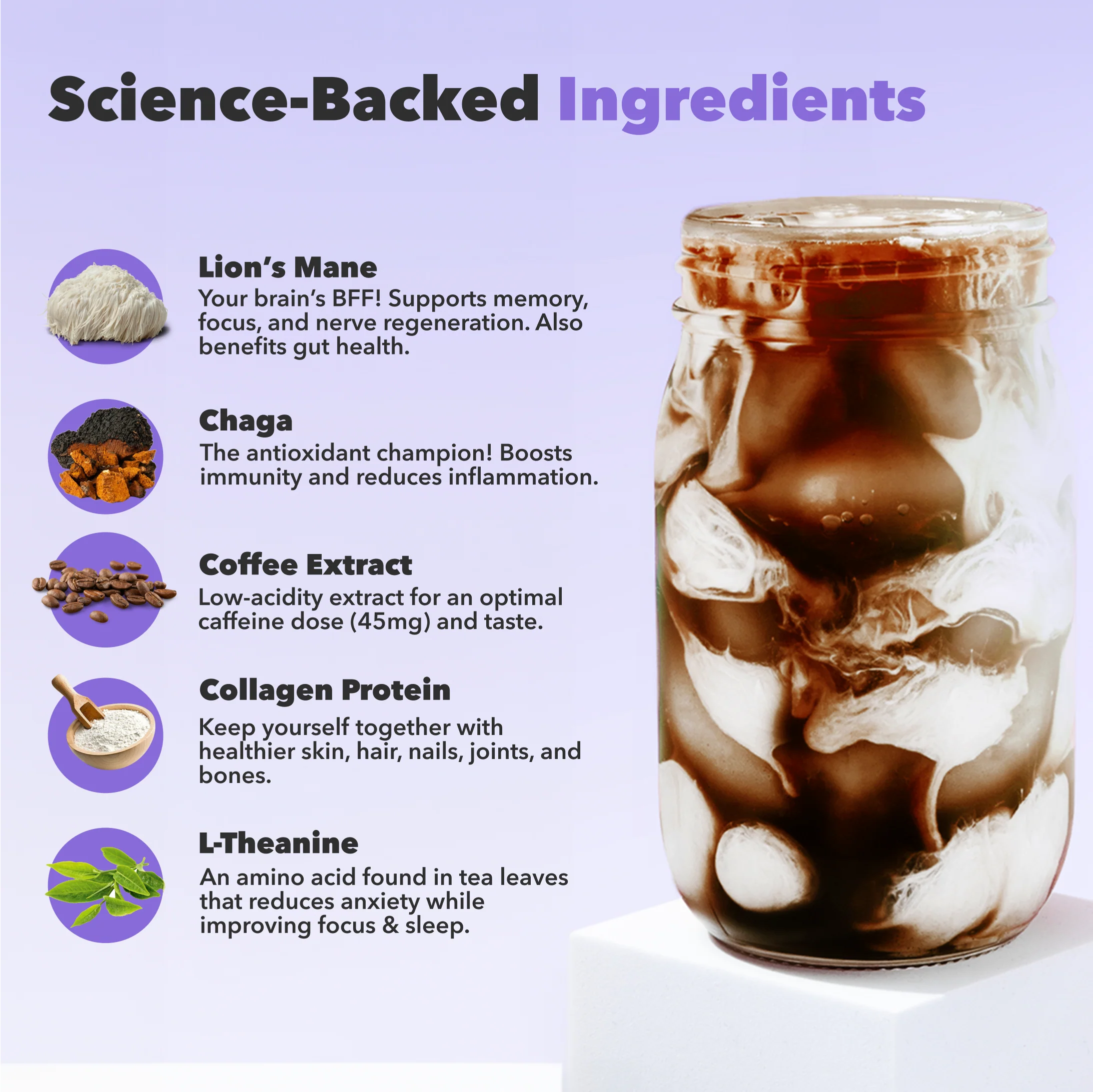 āĀ A hint of low-acidity Cold Brew Coffee Extract with 45mg of caffeine